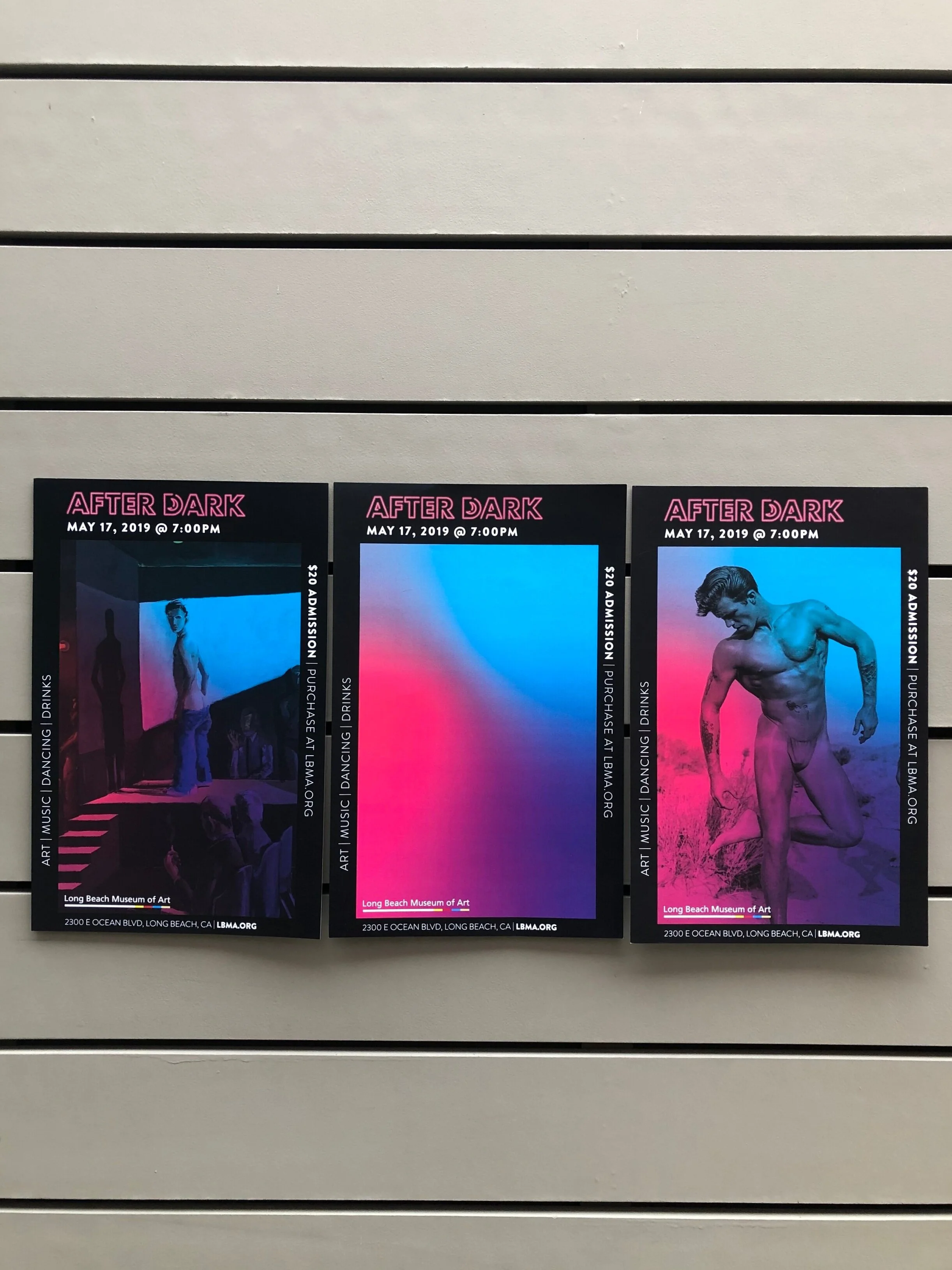Creation of the After Dark brand identity. After Dark is an event held by the Long Beach Museum of Art to promote the opening of new exhibitions.